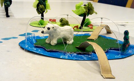 After 4 weeks of intense work in dreamhamar’s Bazaar building, the Cultural Rucksack project has came to an end. It was a interesting sight to watch – pupils experimenting with notions of democracy and public space – coming up with ideas, sharing them with each other, and building them together in models. The results are spectacular – 32 models and texts expressing their wishes – from polar bears to tactile fountains.