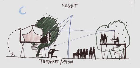 I noticed that one of the problem of the square is the difficulty to see the lake and the landscape because of the Bazar building. So I thought that this disadvantage could be resolved by using the shelters as they are sketched in the booklet, improving them with stairs, for example, that allow people to enjoy the square from a different point of view too.